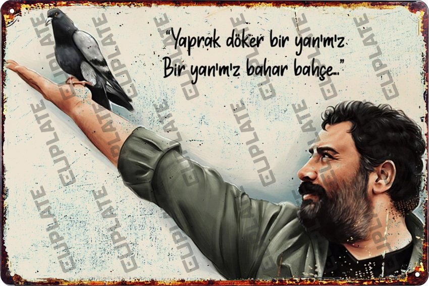 15×30 cm. Retro Dekoratif Metal Plaka Ahmet Kaya