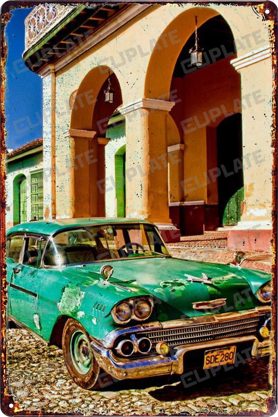 15×30 cm. Retro Dekoratif Metal Plaka klkasik araba