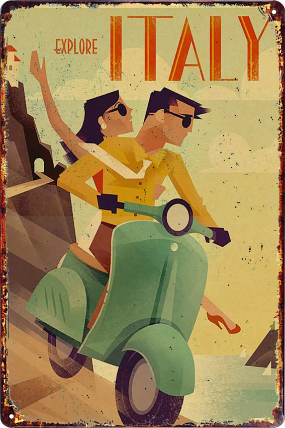 15×30 cm. Retro Dekoratif Metal Plaka Nas İtalya motor