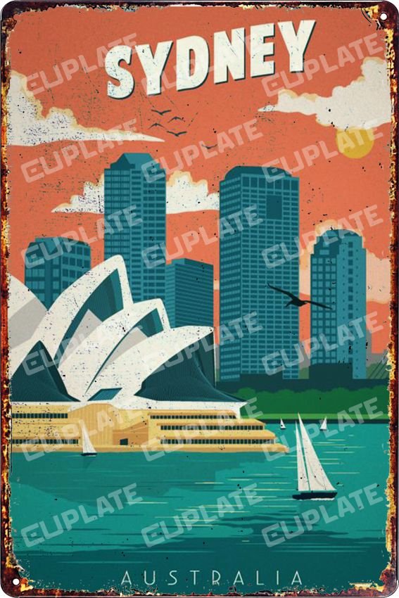 20 x 30 cm Dekoratif Metal Plaka Sidney 1