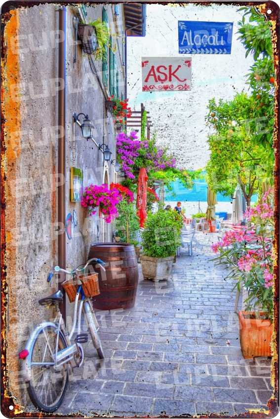 Alaçatı evleri metal plaka